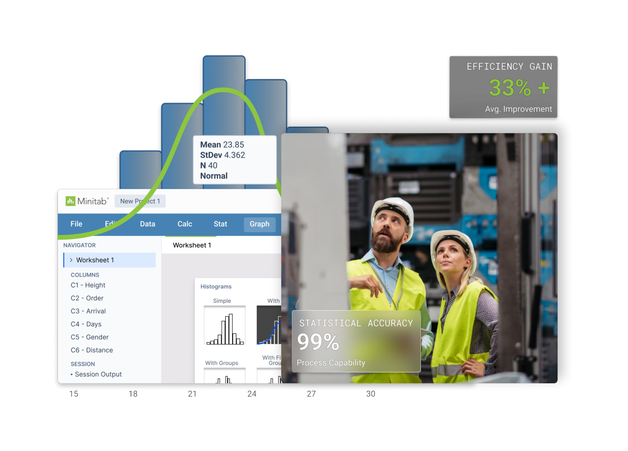 Schließen Sie sich Tausenden von Ingenieuren an, die Minitab vertrauen, um Probleme zu lösen, Prozesse zu optimieren und messbare Ergebnisse zu erzielen.