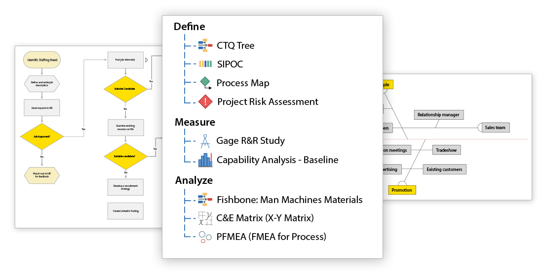 Compartilhe dados entre ferramentas (ex.: reutilize variáveis de entrada de mapas de processo no FMEA ou na matriz C&E)